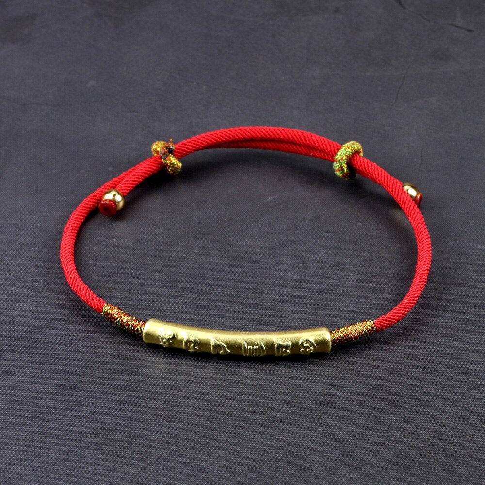 A pulseira vermelha tibetana é muito usada como um amuleto de atração de sorte, prosperidade e riqueza, além disso, a pulseira de corda vermelha é o símbolo da vitalidade e energia, enquanto o dourado pode representar riqueza, prosperidade e espiritualidade. Usar um cordão vermelho do Tibete também serve como amuleto de boa sorte.